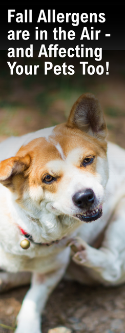 Just like people, pets can suffer from seasonal allergies, especially in the fall. Ragweed, mold spores, and dust mites are common culprits this time of year and can lead to itching, inflamed skin, ear infections, watery eyes, and sneezing.